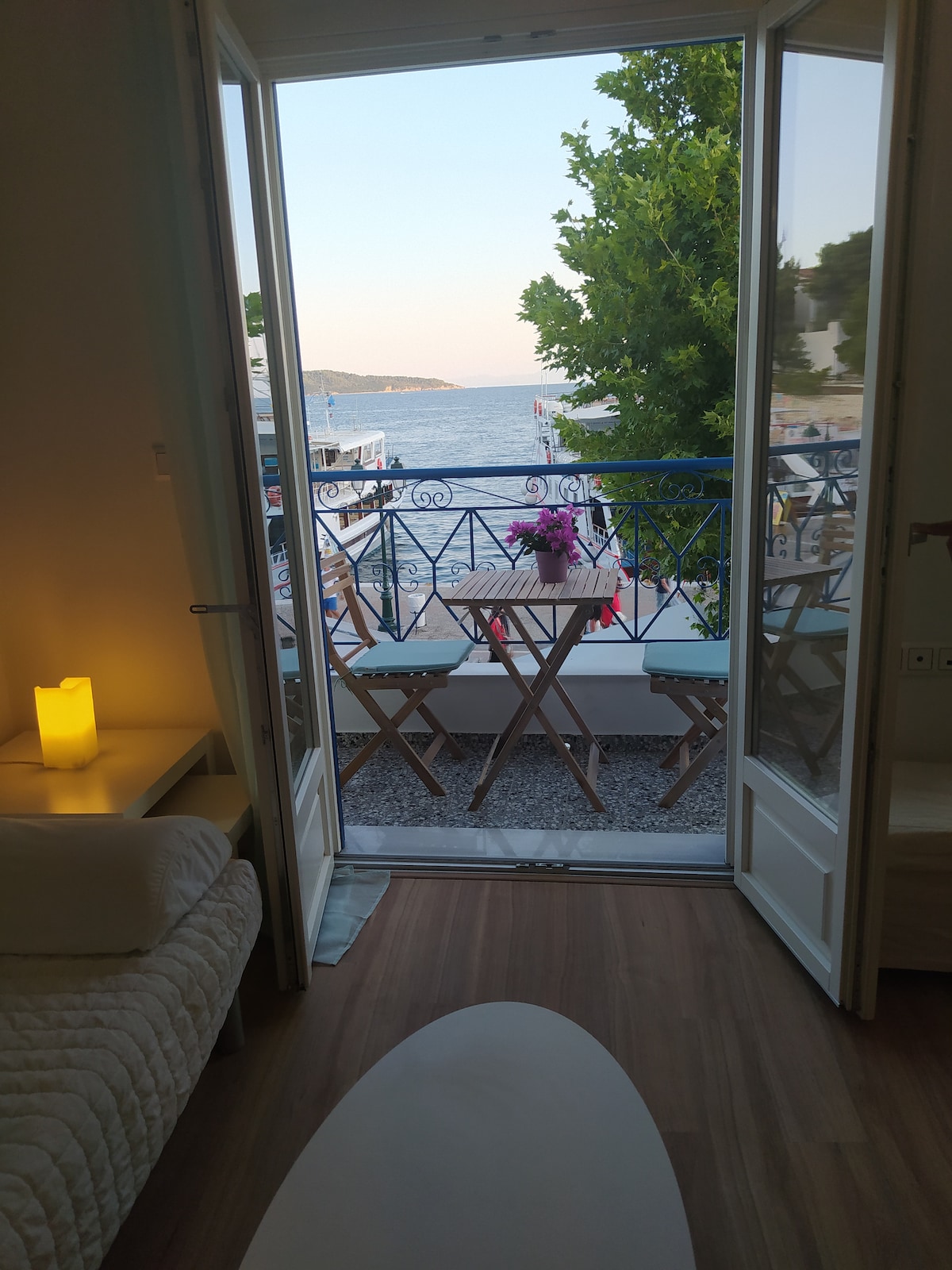 Departamento muy hermoso, recién renovado,con impresionantes vistas al mar, a cinco minutos del puerto,cerca de todo, reunión, tiendas, entretenimiento,cerca de la capilla de Agios Nikolaos. Totalmente funcional,cómodo, moderno con aire acondicionado en todas las habitaciones. La casa se desinfecta antes y después de cada hospitalidad. Terraza gratuita con hermosas vistas,sala de estar y toldo. Opción ideal para tu estancia en el pueblo de Skiathos.