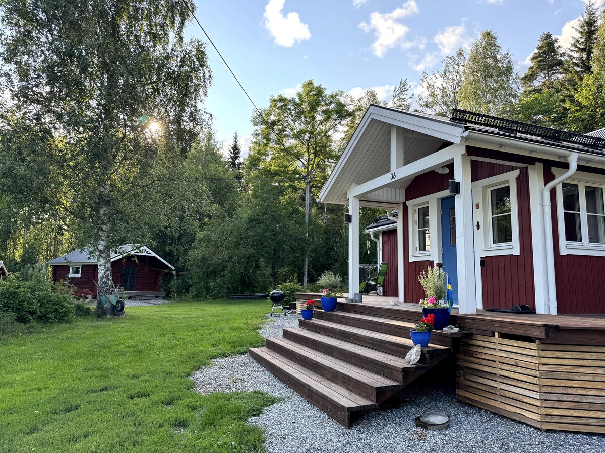 Casa de campo sueca roja tradicional con adornos blancos en un entorno aislado junto al lago. Totalmente modernizado con aire acondicionado en todas partes, preparado para el invierno y cálido durante todo el año. Escápense aquí juntos sin vecinos ni ruido de tráfico que perturbe su paz. Despiértate con el canto de los pájaros y las vistas al lago. Disfruta del café de la mañana en la terraza mientras la niebla se levanta del agua. Por la noche, ajuste la iluminación ambiental y termine el día con una película en el proyector o un viaje en barco al atardecer. Perfecto para parejas que buscan tranquilidad y tiempo de calidad.