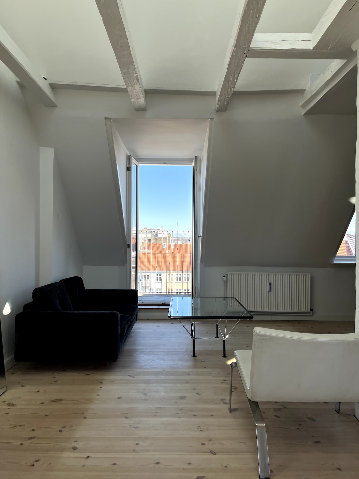 Departamento de 3 habitaciones ubicado en la calle llamada “Lavendelstrædet”. Es una calle tranquila a solo un minuto a pie de Strøget, la famosa y más larga calle peatonal del mundo. El vecino de al lado es la torre del Ayuntamiento de Copenhague, que refleja el ambiente de la ciudad antigua y nostálgica entre cafeterías de moda, restaurantes y tiendas especiales. En otras palabras: el pulso de la ciudad está justo afuera de la puerta principal. A pesar de que el departamento está muy céntrico, no hay ruido ni dentro del departamento ni fuera del soleado balcón orientado al sur, en el que caben fácilmente seis personas. El edificio data de 1799, pero ha conservado su encanto original tras una importante renovación en 2007. INTERIOR: Además de una entrada principal con espacio para abrigos y zapatos, el departamento consta de una cocina grande y abierta con una sala de estar amplia, todo en estilo neoyorquino, con techos altos y mucha luz natural. Hay dos dormitorios y un baño recientemente renovado con lavadora y secadora. El departamento está decorado al estilo escandinavo moderno; en otras palabras: el punto de partida perfecto para unas vacaciones en Copenhague.