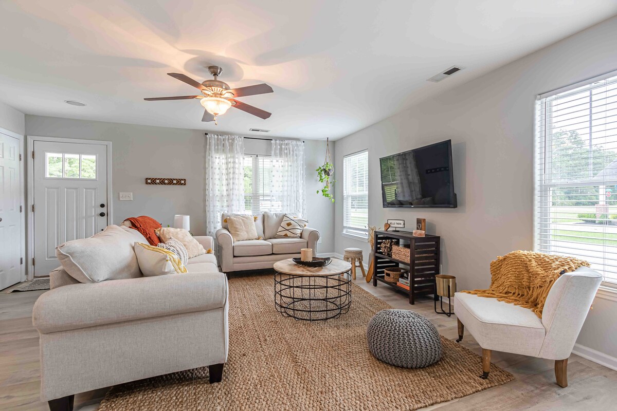 Virginia’s Country Cottage, a charming guest house constructed in 2020, nestled on 40 acres behind our residence. Enjoy your own private yard and relax on the new outdoor patio featuring a gas fire pit. This 950-square-foot retreat offers tranquility in a secluded setting while still being close to Western Blvd. Nearby amenities include restaurants, grocery stores, a movie theater, mall, and Walmart, making it an ideal spot for those visiting cities surrounding onslow county.