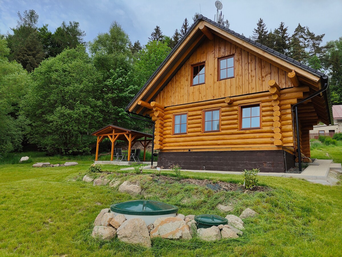 Te ofrecemos una estancia agradable en nuestro nuevo chalet de madera que se construyó en 2021. Se encuentra en un lugar tranquilo en la ciudad de Nejdek, que está a sólo 15 minutos de la hermosa ciudad balneario de Karlovy Vary y 20 minutos a la montaña más alta de Krusne hory (Klinovec). Nuestra casa está a 640 metros sobre el nivel del mar, lo que ofrece muchos días de nieve en invierno.