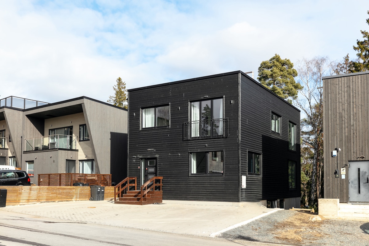 Relájate en esta casa única y tranquila cerca del bosque y el mar, así como del transporte público. Si quieres tu propio aparcamiento, parcela, patio, así como completamente recién construido en alta calidad, entonces has encontrado el lugar adecuado.