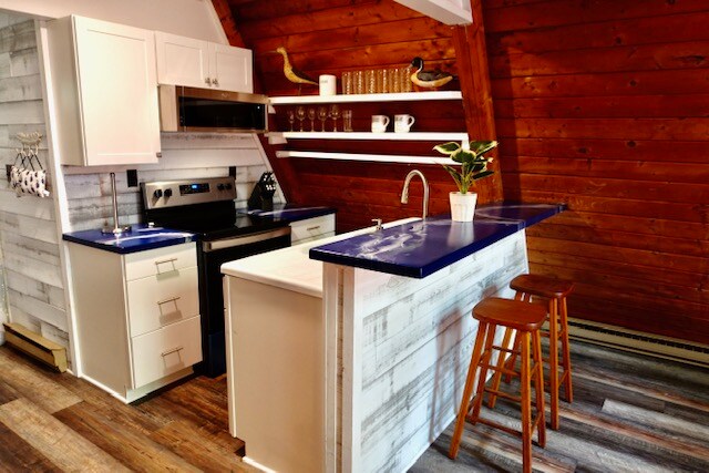 This is a two room above the garage apartment with a dedicated side entrance for guests separate from the main house by screens down and a barn door up. Once upstairs you have your own private space. Your mini fridge will always be stocked with an assortment of beverages and snacks as well as breakfast items. Enjoy, our kayaks, fire pit or sunset viewing on the pier. Lots of hiking and water sports abound in the area. A short drive south is Solomon’s island. This is a safe space for all🥰