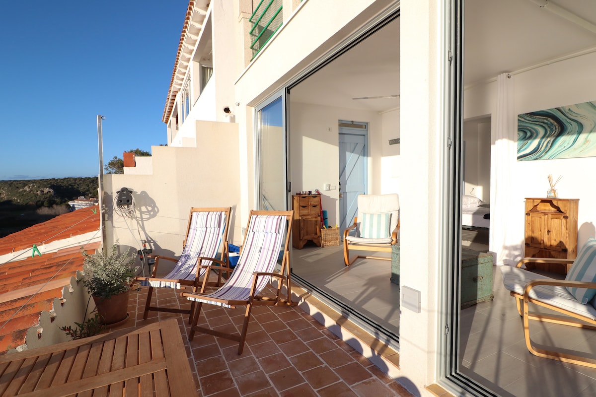 Casa con vistas al Mar, ambiente tranquilo,residencial y familiar. AIRE ACONDICIONADO. iNTERNET WIFI. Te va a encantar, las dos playas se encuentran a un minuto caminando desde la casa. Ideal para parejas y también con un hijo. El Camino De Caballos "Cami de Cavalls" se encuentra a pocos metros de la vivienda. Es un sendero que bordea la isla, es muy bonito y adecuado para hacer excursiones. Contacto con la naturaleza. Aparcamiento privado en el interior del patio comunitario. Tv. Smart LG.
