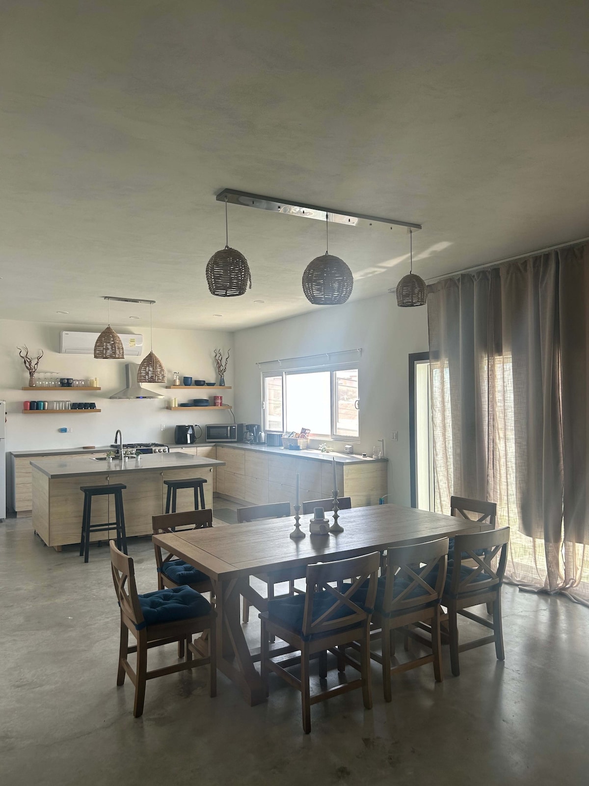 Situado a unos pasos de una playa tranquila y privada. Relájate y disfruta de la increíble vista desde los asientos interiores o una cómoda tumbona en el patio. Las actividades incluyen exploración de piscina de marea, todoterreno, deportes acuáticos y las famosas aguas termales de Puertecitos. En el interior hay techos altos y una cocina completa. Perfecto para parejas, aventureros, pescadores, familias (con hijos) o cualquier persona que busque desconectarse (sin WIFI). ¿Listo para escapar y relajarte con el sonido del océano y las estrellas por la noche?