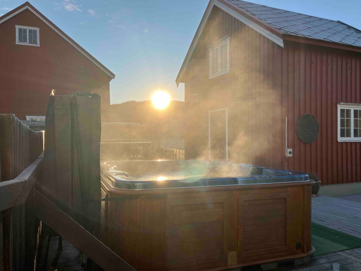 Casa de campo luminosa y moderna cerca del mar. Grandes ventanales panorámicos con una vista fantástica. Cocina con lavavajillas. Viene con un pequeño barco de pesca/bote de remos. Puedes pescar o nadar justo debajo de la cabaña. Jacuzzi de leña (el uso debe acordarse, 350 NOK para 1 uso,luego 200 por calefacción). La bandeja de SUP se alquila 200 NOK por estancia por SUP. La cabaña se encuentra sola en una nariz al final del río en el fiordo surnadal. El check-in suele ser a partir de las 15:00,pero a menudo es posible hacer el check-in antes. A 20 minutos del centro alpino de Sæterlia y de senderos a campo traviesa.