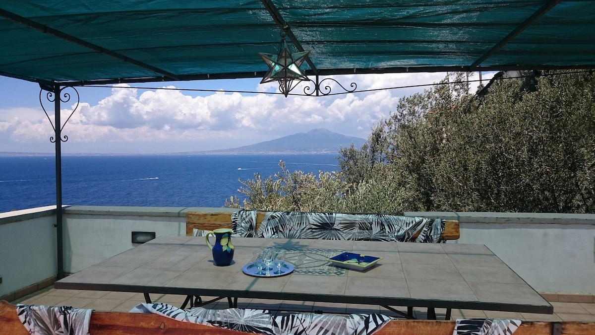 Un tesoro en el corazón del Parque de los Montes Lattari: ideal para quienes quieren pasar unas vacaciones en la naturaleza y relajarse, pero al mismo tiempo quieren visitar las perlas de las penínsulas de Sorrento y Amalfi. El apartamento dispone de dormitorio con cama de matrimonio y cama individual (sofá cama) con vistas al Vesubio, cocina, baño privado con ducha y terraza con vistas al mar y a las verdes colinas.