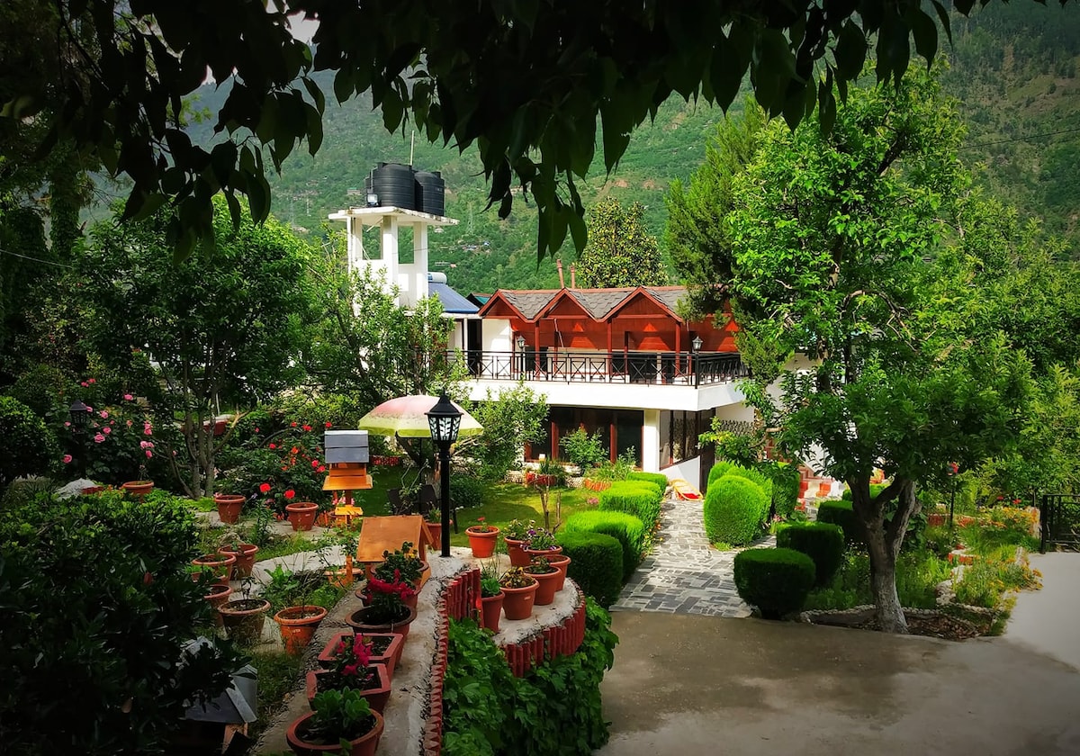 Casa de campo rústica, pintoresca y romántica construida en una granja de 6 acres muy cerca de Manali. Tenemos unas vistas impresionantes del Himalaya de Pir Panjal y del valle de Manali con el río Beas serpenteando por el piso del valle. La cabaña es una experiencia de la vida agrícola, la permacultura, la agricultura orgánica y también tiene las comodidades de un buen hogar con comodidades modernas. También obtendrá una prueba de primera mano de la experiencia de la granja a la mesa que principalmente servimos alimentos que cultivamos en la granja.