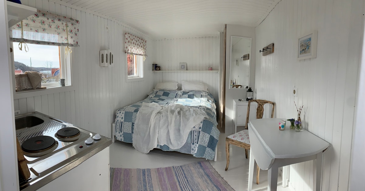 ¡Alquila nuestra casa de huéspedes en la hermosa Bohuslän! En un valle tranquilo, cerca tanto del mar como de los lagos. La cabaña tiene unos 35 metros cuadrados y consta de una sala de estar con cocina abierta, un dormitorio separado y un baño con ducha y aseo. La cocina tiene nevera con congelador, microondas, cafetera, tostadora y placa de inducción. El dormitorio tiene una cama doble (160 cm) y la sala de estar un cómodo sofá cama (160 cm). En julio y agosto, solo alquilamos semanalmente, de sábado a sábado.
