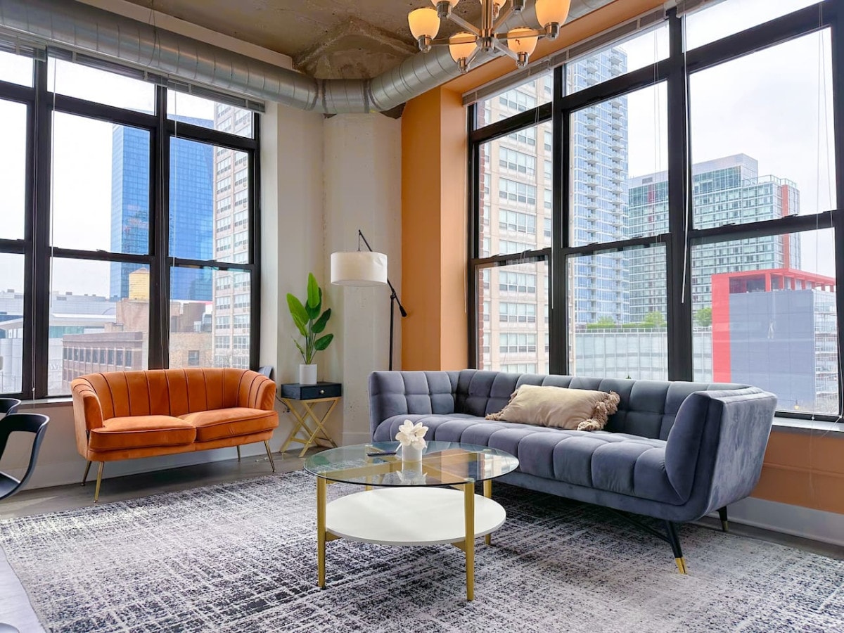 Bienvenido y experimenta Chicago con estilo en nuestra exclusiva suite de esquina enclavada en el dinámico distrito de South Loop, a pocos pasos de McCormick Place y a pocos minutos de los principales lugares de interés de la ciudad. Esta moderna suite metropolitana de 2 dormitorios y 2 baños cuenta con techos elevados de 10 pies, un amplio diseño abierto e interiores seleccionados que la diferencian de la estancia promedio. Desde muebles personalizados hasta servicios bien pensados, creamos un hogar elevado para familias, profesionales y estadías largas.