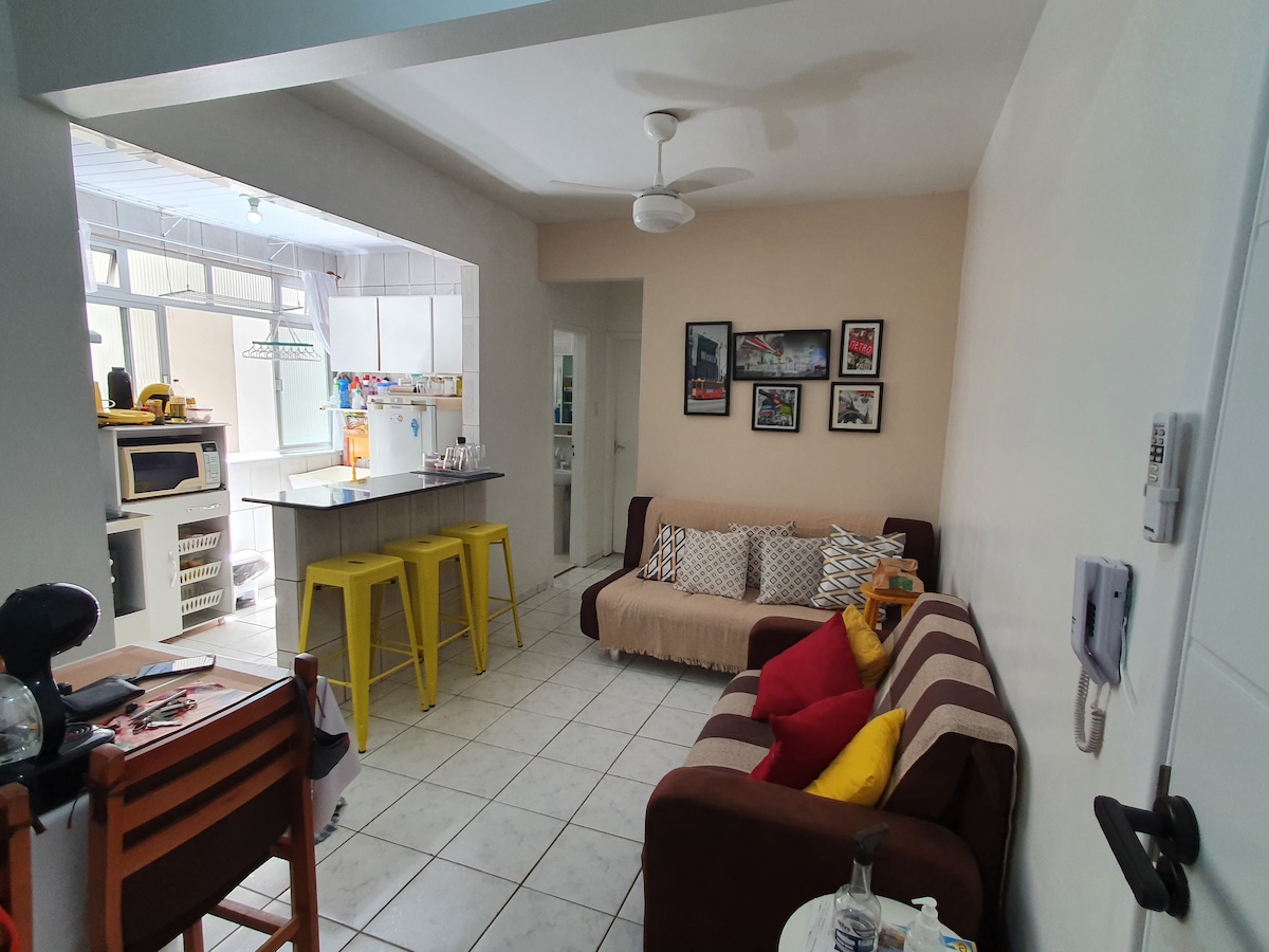 Departamento de 1 dormitorio, cocina americana y baño. Con Smart TV en la sala de estar y TV con Fire TV en el dormitorio. Tiene wifi. Tiene capacidad para 4 adultos y está restringido a 5 personas, incluidos niños. Ubicación privilegiada, cerca de tiendas/centros comerciales, restaurantes, panaderías, pastelerías, supermercados, tiendas de conveniencia y lugares turísticos, a una cuadra (aprox. 100 m) de la playa.