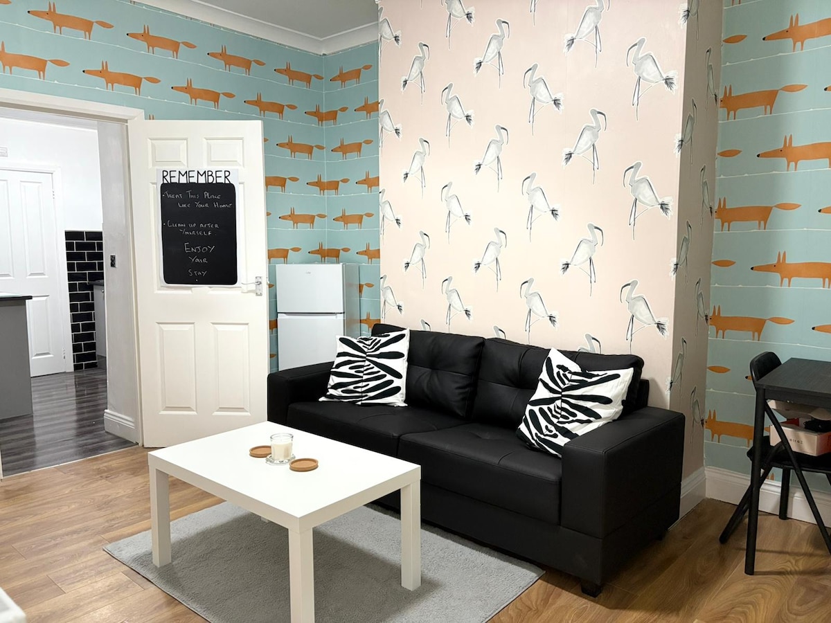 Si estás en Tyneside por negocios, vacaciones o para visitar a tu familia, nuestro apartamento independiente es un excelente lugar para alojarte.Estaciona tu auto fuera de la carretera frente al piso. En el interior, nuestro piso de 2 dormitorios en la planta baja está totalmente equipado y es muy cómodo. Dispones de una habitación individual y una habitación doble.La sala de estar y la cocina y el baño modernos ofrecen todas las comodidades que podrías desear, con acceso al jardín trasero también. Wifi, estacionamiento gratuito, 2 minutos del metro, comida para llevar, Lidl, 7 minutos en coche de la playa.