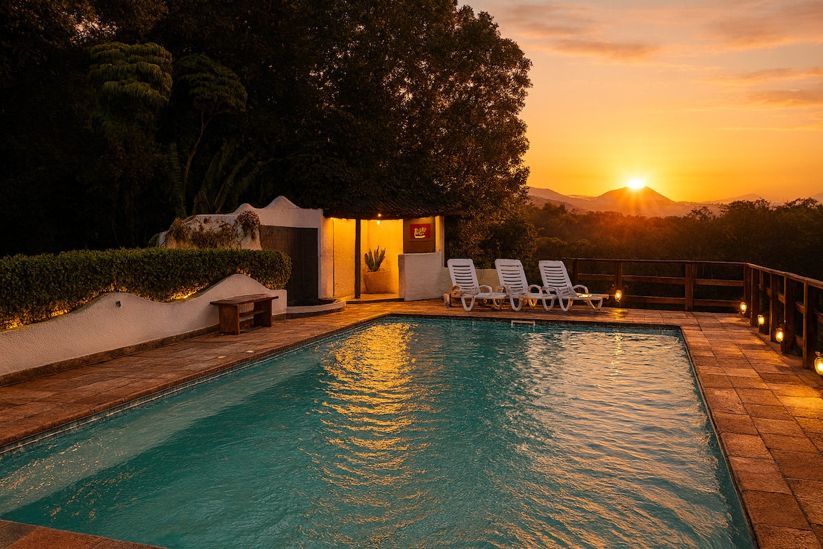 Casa única de tres plantas construida sobre 860 m2 de terreno. Alojamiento con buenos acabados y 4 dormitorios: 2 suites, 1 dormitorio, 1 habitación grande con sofá cama, sala de juegos con mesa de billar de 8 pies, jardín grande, barbacoa y piscina privada. Todo ello con la selva atlántica como telón de fondo y vistas panorámicas. Esta casa tiene un loft totalmente equipado encima con entrada privada, que puede ser alquilado exclusivamente por los huéspedes de la casa principal para alojar grupos más grandes (disponible para más de 6 huéspedes adultos).