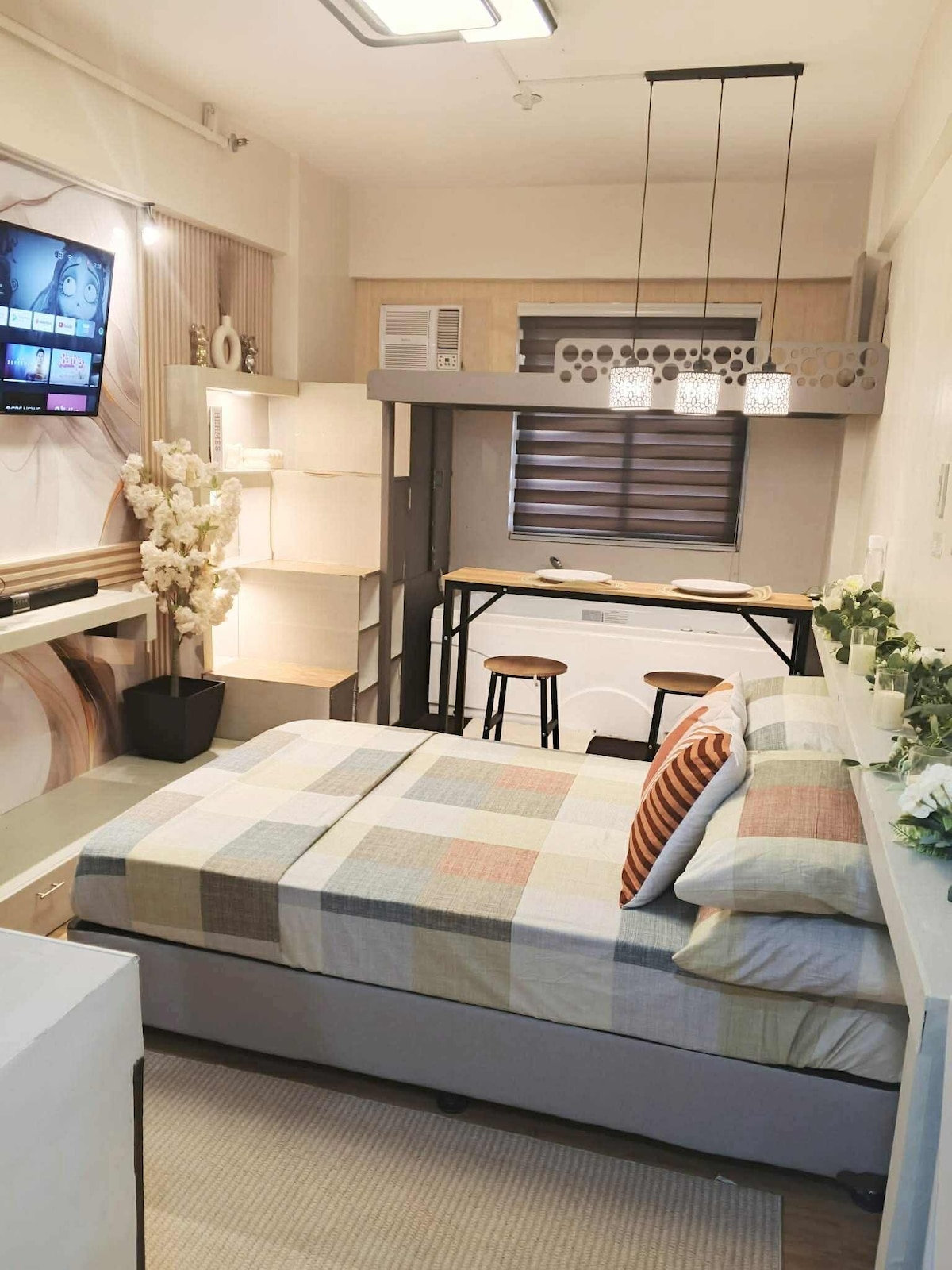 Experimenta la combinación perfecta de comodidad hogareña y lujo similar al de un hotel, donde tu relajación, disfrute y comodidad son nuestras principales prioridades. Originalmente diseñado como un apartamento de 2 dormitorios, hemos transformado esta unidad en una suite de 1 dormitorio con balcón, que ofrece una amplia sala de estar y comedor. Completo con electrodomésticos, opciones de entretenimiento y consolas de juegos, este apartamento totalmente amueblado en Quezon City está disponible para alquileres diarios, semanales o mensuales, ideal para tus próximas vacaciones.