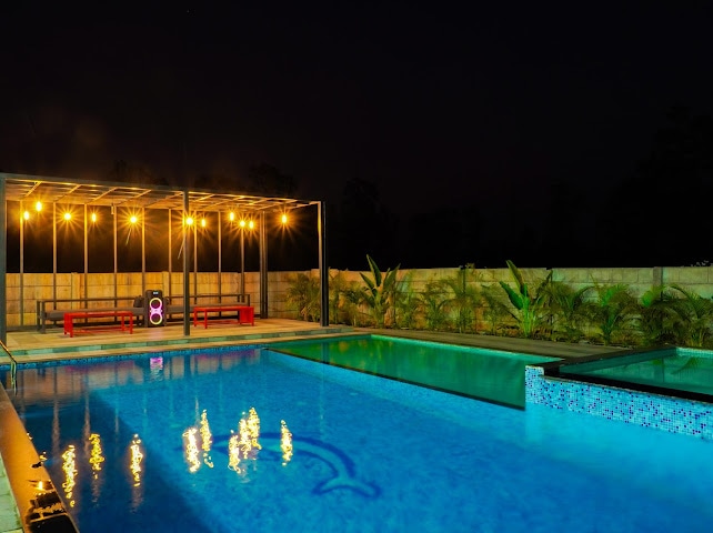 Sri Tulasi Eco Farm Stay es una hermosa granja orgánica de alrededor de 2 acres, y esta casa de madera con piscina privada de agua dulce con vistas perfectas al río hace que tu estancia sea súper memorable. Cama tamaño king de lujo súper cómoda, enorme balcón y todo esto en el regazo de la naturaleza. Un lado tienes vistas al río, el otro lado tiene vistas al césped. Cuando se trata de actividades, juega al bádminton descalzo, date un chapuzón en nuestra piscina de agua dulce o simplemente baño en el río Saradha, cricket neto, pesca y jardinería.
