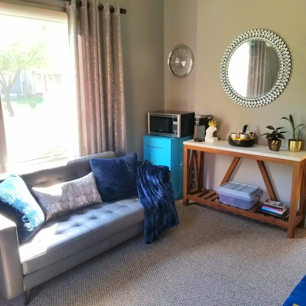 Nuestra casa de carruajes (construida en 2019) se encuentra detrás de nuestra casa histórica en el lado este cercano de Indianápolis. Hemos diseñado el espacio pensando en el viajero moderno, desde el diseño hasta el café y el arte local. ¡Queremos que tu estancia te ofrezca las comodidades de un hogar mientras te inspiras con la ciudad que amamos! ¡Un espacio luminoso y moderno en un barrio céntrico cerca de todo lo que Indy tiene que ofrecer! Cerca de Bottleworks, Mass Ave y la mayoría de las ubicaciones del centro. Métodos de limpieza con suministros no tóxicos. ¡Se admiten niños!