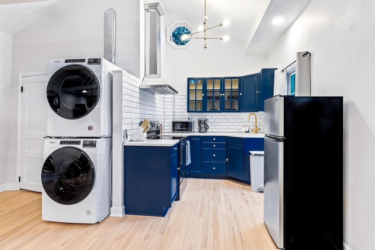 ¡Experiencia única con estilo! Disfruta de un fin de semana o de una estancia prolongada en esta encantadora casa de carruajes a poca distancia a pie de restaurantes populares, cervecerías y tiendas locales. ¡La ubicación es perfecta! En el interior encontrarás una cocina totalmente equipada, baño, sala de estar con TV inteligente de 55 pulgadas, un espacio de trabajo/escritorio dedicado y una cama tamaño king en el loft. Los huéspedes tendrán privacidad con cerraduras inteligentes de registro automático y un espacio de estacionamiento dedicado. ¡Estamos deseando que participes en la experiencia!