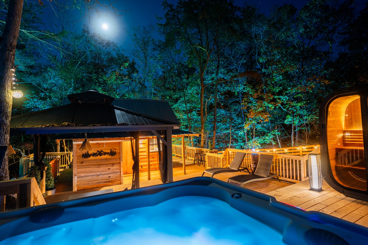 Intimate Cabin Escape: Hot Tub, Sauna & Projector
