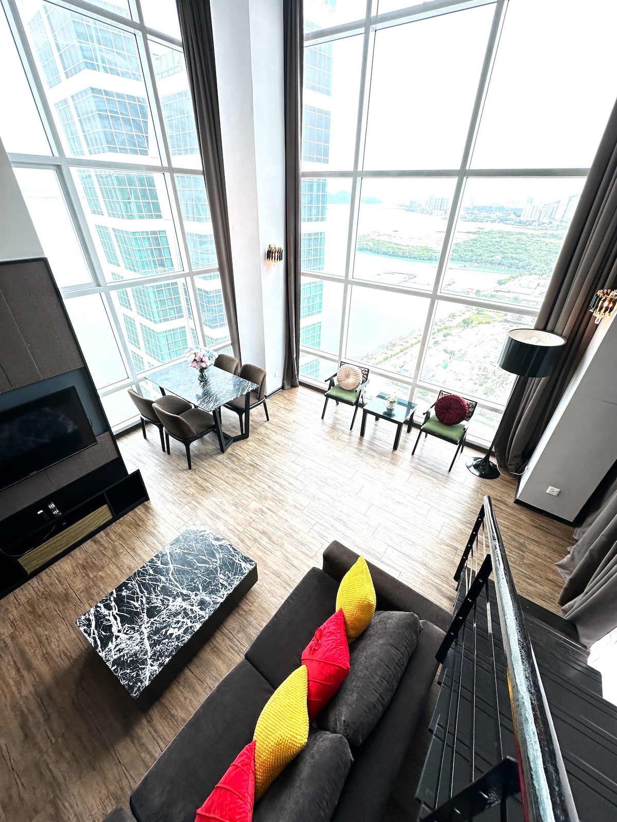 Te damos la bienvenida a Haotianyi Pavilion: ¡dúplex de lujo con vista al mar en Nuaderland! Este encantador refugio te llevará al encanto del nostálgico corazón de Penang, combinado con el lujo moderno para crear una experiencia inolvidable para ti.Situado en el corazón de la nostálgica ciudad de Penang, Nuaderland es un lujoso edificio dúplex de 110 metros cuadrados que combina a la perfección la historia, la belleza de la naturaleza y la comodidad moderna. Todas las mañanas, cuando te despiertes en tus sueños, te recibirán con encantadoras vistas al mar e incluso a un vistazo a la isla y a los emblemáticos y espectaculares puentes del paisaje.Imagina subir hasta la parte superior de una colina de gran altura con unas vistas impresionantes con vistas a una hermosa vista.A medida que sale el sol naciente, el cielo está salpicado de rosa, púrpura y naranja, barriendo la bruma de la noche, marcando la pauta para un día de exploración y relajación. Sin embargo, más de Nuaderland te espera.Tiene el jardín privado más alto de la isla de Penang, que rinde homenaje a la rica vegetación de la montaña Penang.En este jardín, estarás inmerso en la paz y la maravilla de la naturaleza. Da la bienvenida a Nuaderland, donde se reúnen el nostálgico Penang y la elegancia moderna.Empieza tus vacaciones aquí, donde la historia, la belleza natural y la comodidad están entrelazadas para crear una experiencia indeleble.Reserva ahora para desvelar el misterio de esta encantadora isla paradisíaca.¡Hagamos que Nuaderland forme parte de tus recuerdos!