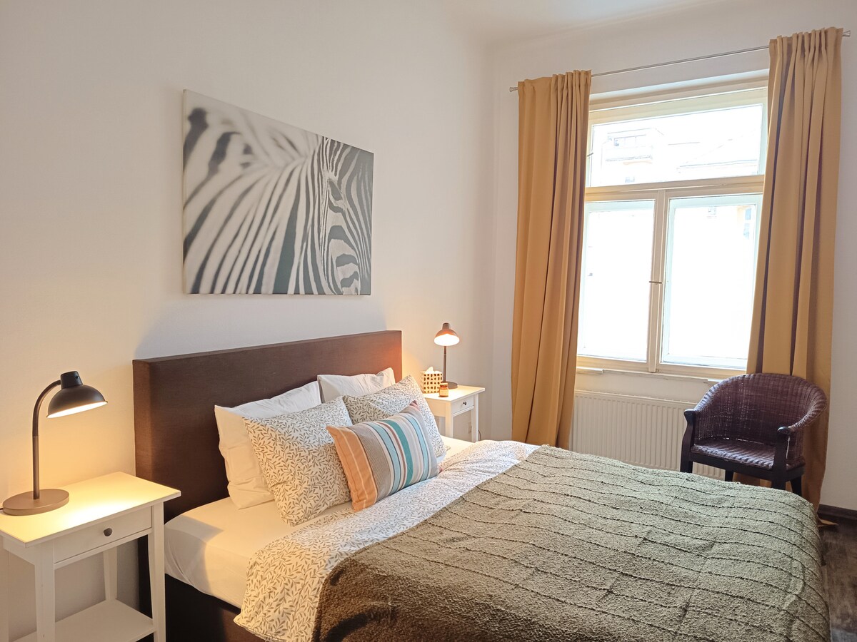 ¡Bienvenido a nuestro acogedor departamento en el corazón de Praga! El apartamento ofrece un alojamiento cómodo para un máximo de 4 adultos y está equipado con todo lo necesario para mejorar tu estancia. El dormitorio cuenta con una cama doble y, en la sala, encontrarás un sofá cama. Ambas habitaciones se pueden cerrar para disfrutar de la máxima privacidad, ya sea que viajes con amigos o familiares. Las persianas enrollables eléctricas crean el escenario perfecto para una relajación o un sueño óptimas, incluso si necesitas descansar durante el día.