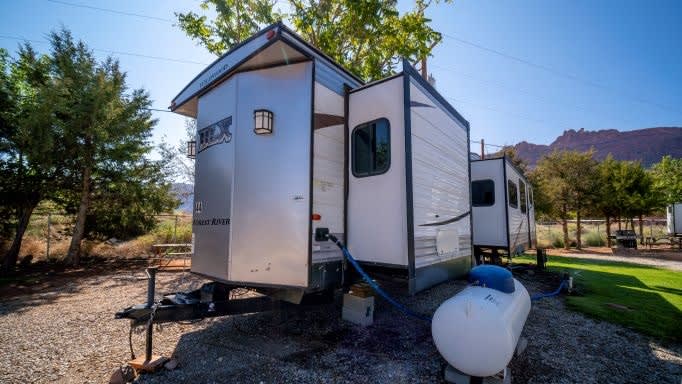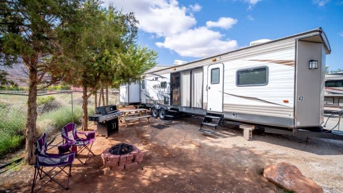 ¡Moab Glamping! ¡Disfruta del campamento y la experiencia al aire libre en las comodidades de esta autocaravana de remolques de gran destino! Ubicada en Moab RV Resort, esta casa rodante está configurada y lista para usar a su llegada. ¡Más del 50% de nuestros huéspedes son usuarios de RV por primera vez! El parque familiar está a unas 5 millas del centro de Moab, y a poca distancia en coche de los parques nacionales Arches & Canyonlands. Este no es un alquiler apto para mascotas. ¡Feliz Glamping de usa Camping Company!