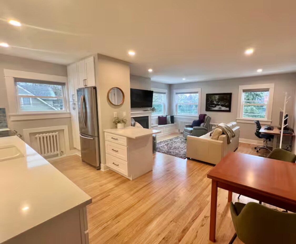 Alojamiento de 1 cama y 1 baño totalmente actualizado con capacidad para cuatro personas. Estacionamiento gratuito en el lugar, lavadora/secadora, aire acondicionado, cama tamaño king. Cerca de restaurantes, cafeterías, parques (incluido el parque Manito), Trader Joes y el centro de Spokane. No se puede fumar. A 10 minutos en auto del campus de Gonzaga. Cerca del Hospital Sagrado Corazón, el Hospital Infantil y el Hospital Deaconess. La cocina cuenta con ollas, sartenes y utensilios básicos de cocina. Cafetera Keurig, nevera/congelador completo, TV inteligente con suscripciones a Netflix, Disney+ y Amazon Prime.