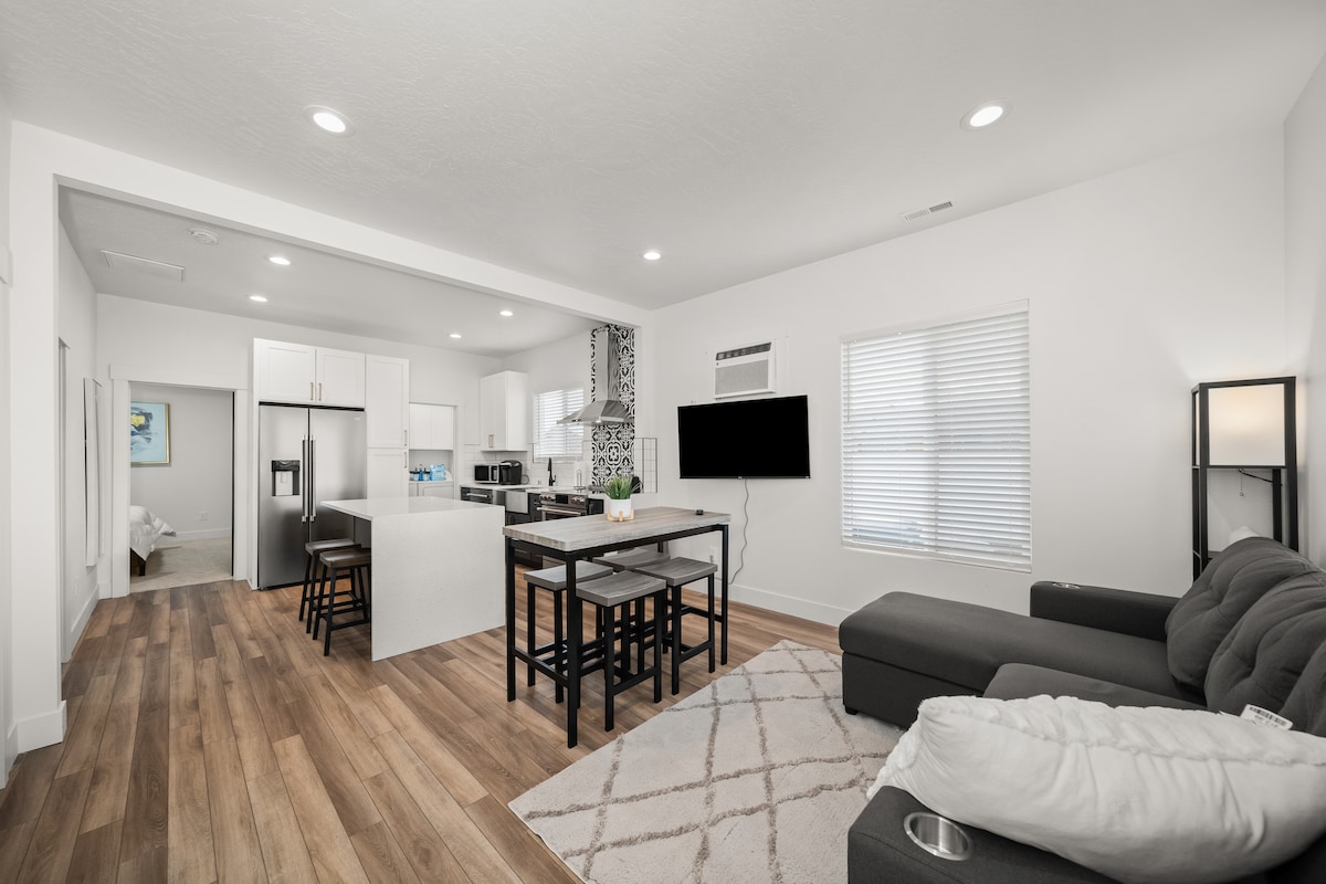 ¡Te damos la bienvenida a J&K en Main! - Renovado cuidadosamente con acabados de alta gama. - Decora y características dignas del sueño de cualquier admirador de diseño. - Camas tamaño king de espuma viscoelástica de lujo + cama para 1 persona en el sofá. - Sala de mesa de billar compartida para socializar. - Wifi rápido de clase ejecutiva y TV inteligente - Cocina totalmente abastecida y lavandería en la unidad. - Estacionamiento seguro de pago cerca ($30 o más/día, que es estándar para el centro de la ciudad). - A poca distancia de los mejores restaurantes, tiendas, bares y cafeterías de Spokane.