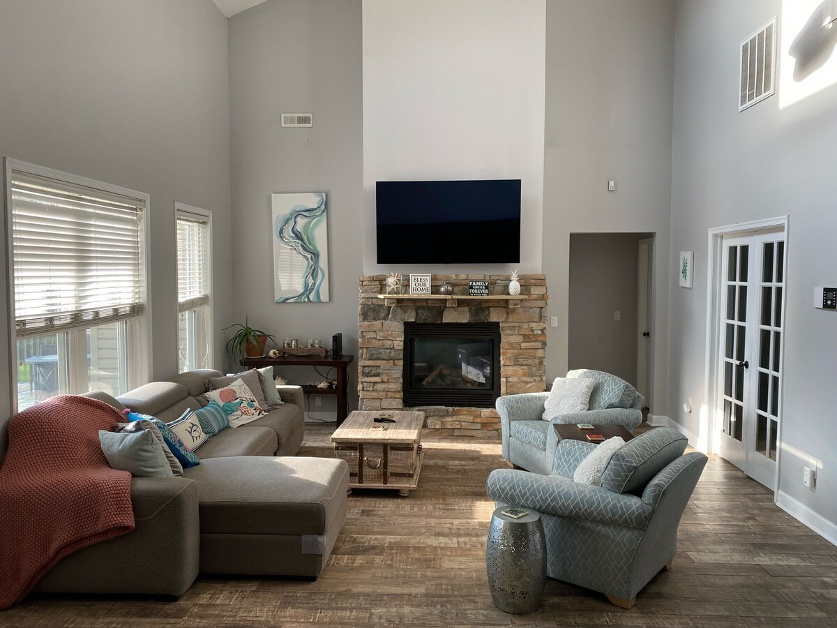 ¡Este es el alojamiento al que querrás volver, año tras año! Ubicada en el lago Anna, uno de los lagos más hermosos de VA, esta casa frente al mar hecha a medida tiene una chimenea, playa de arena blanca y casa flotante, porche cubierto, terraza, sala de teatro, (2) kayaks, (2) tablas de surf de remo. Cargado w/ amenities--4 mesas de comedor y asientos para un máximo de 30 personas, esta casa de 6 dormitorios, 5,5 baños y 2 cocinas es realmente una escapada increíble. ¡Una familia de 20 tendrá mucho espacio! ¡Trae tus bicicletas, barcos y zapatos para caminar!