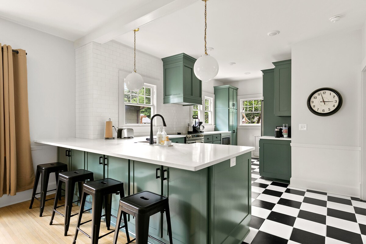 Este bungalow ha sido completamente remodelado, manteniendo el encanto histórico. La casa tiene capacidad para seis personas, cuenta con una oficina privada, lavandería en el sótano y es ideal para familias con niños pequeños. Hemos pensado en todo para que tu estancia sea cómoda. La casa incluye una cocina de chef, acabados y muebles de alta gama, una gran cocina/comedor y está a pocos pasos de restaurantes locales y una cervecería. ¡Disfrutarás de tu estancia en este bungalow Rountree actualizado!