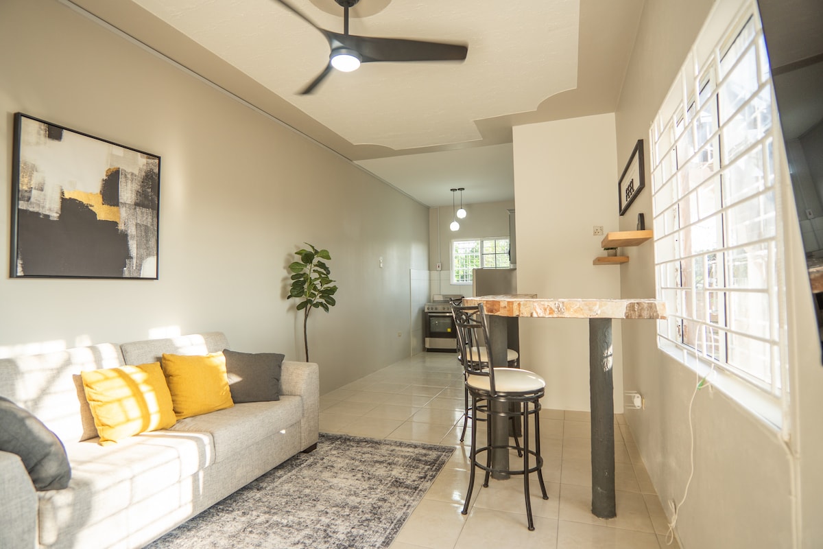 Un condominio de lujo moderno y recientemente renovado en un complejo seguro y céntrico en la zona metropolitana de Kingston. El condominio está diseñado y decorado para atraer al gusto más exigente. El alojamiento es adecuado para el viajero de negocios profesional o emocionante en busca de vacaciones. A pocos minutos del distrito central de negocios de New Kingston, hay fácil acceso a elegantes restaurantes y supermercados. También está disponible una opción de llegada sin restricción de horario para los huéspedes