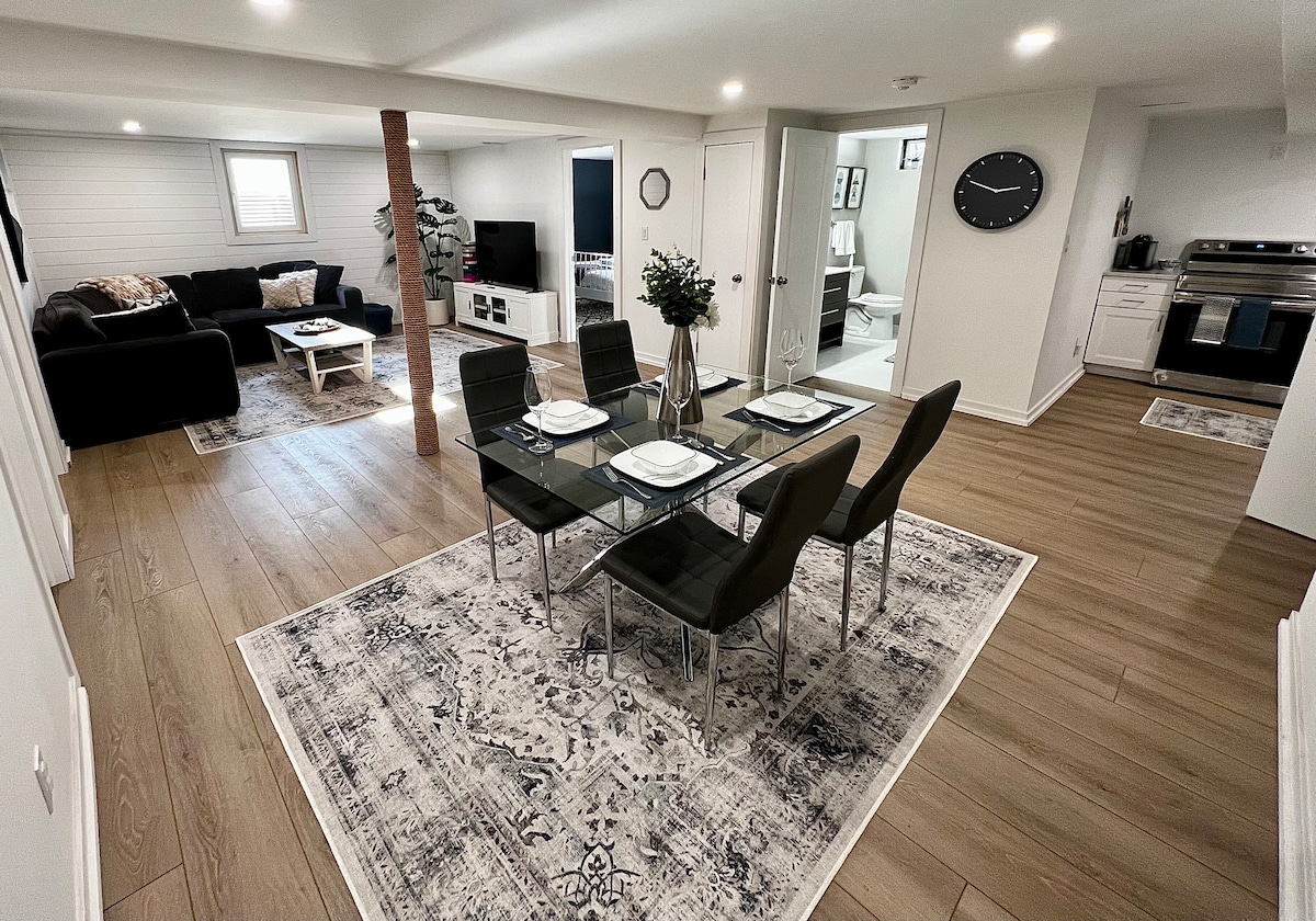 Spacious Basement, 75” TV, Free Breakfast, Parking