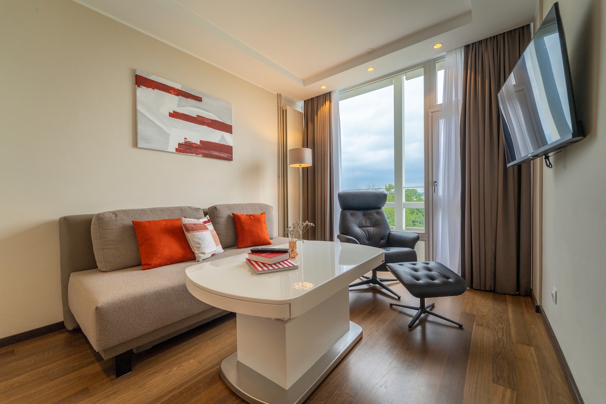 Nuestro Red Studio, situado en la quinta o sexta planta, tiene, como su nombre indica, un ligero toque rojo y es perfecto para huéspedes de negocios o descubridores de Viena. A pesar de su céntrica ubicación, se encuentra en un entorno verde y tranquilo, por lo que es ideal tanto para relajarse como para estar en el centro de la acción. Gracias a su equipamiento completo, todos los huéspedes deberían encontrar todo lo necesario para sentirse como en casa.