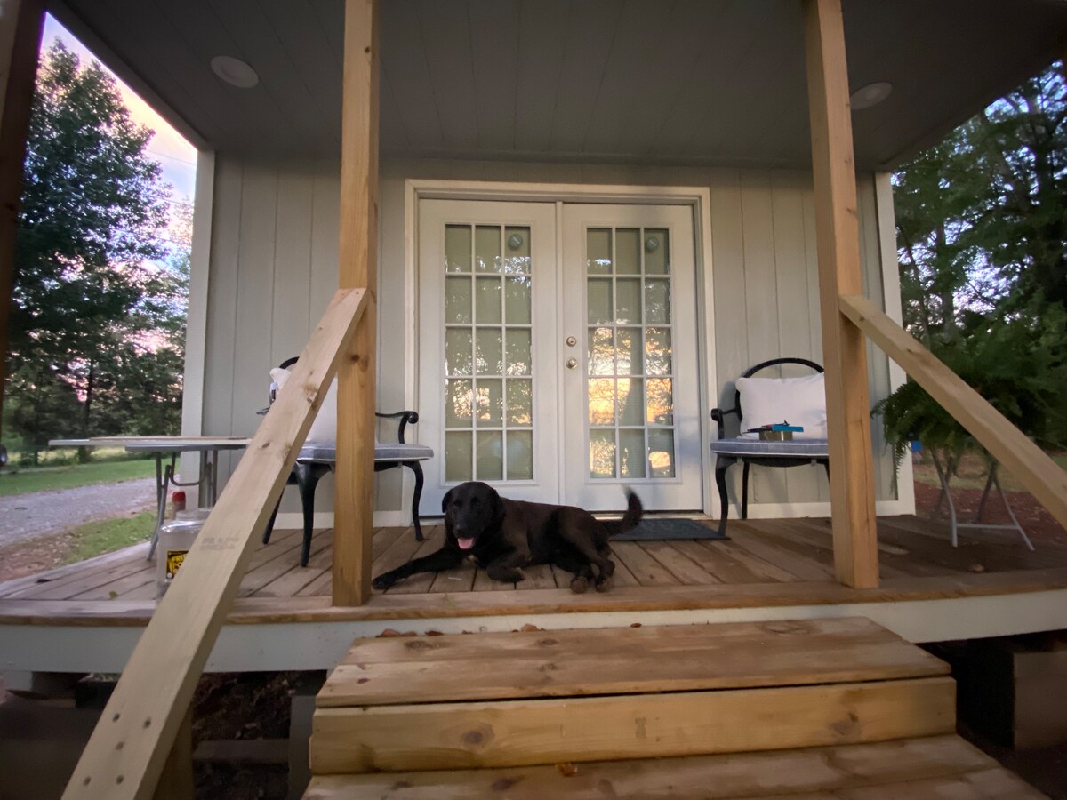 The TinyBarn at Covenant Woodlands is a lofted 350 sq ft glamping cottage in the piney woods of AL. Made with love from locally reclaimed upcycled materials. Equipped with modern appliances that fit the nostalgic cabin vibe: an electric wood burning stove and red retro kitchen appliances complimented by bear & moose accent decor. It’s cozy, but with everything you need for a getaway. Outside you’ll find rockers, a fire pit/outdoor dining area plus a hammock and bench. Insta: @CWglampingInAL