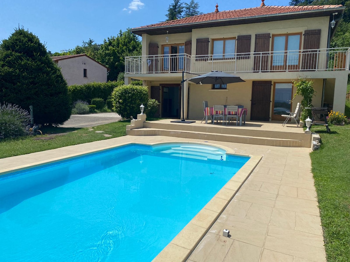 Bonito estudio independiente al fondo de un jardín con zona exterior y posibilidad de acceso a la piscina familiar. Perfecto para 2 personas, cerca del centro de Saint-Genis-Laval y sus tiendas, los hospitales de Lyon Sud y el transporte público (C10 dirección place Bellecour). Bonita habitación luminosa con sala de estar, cocina equipada, zona de escritorio. Zona de noche y televisión en el altillo. Se proporcionan sábanas y toallas. En el exterior, una bonita terraza para relajarse.