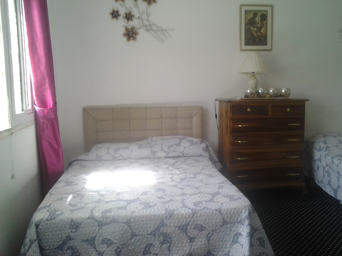 Relájate en este tranquilo oasis de jardín jamaicano Una unidad privada completa de 1 dormitorio en el nivel superior de una casa grande. Amplios pisos de baldosas en todas partes, con balcón/patio privado superior y entrada independiente. Serás bienvenido y atendido por el propietario, quien puede ayudarte con otros servicios si es necesario 'A SOLICITUD'. Como recogida/traslado al aeropuerto, EXTRA. Nos complace proporcionar elementos esenciales, jabón, champú, ropa de cama/toallas limpias, café, té, especias y suministros de desayuno continental de cortesía.