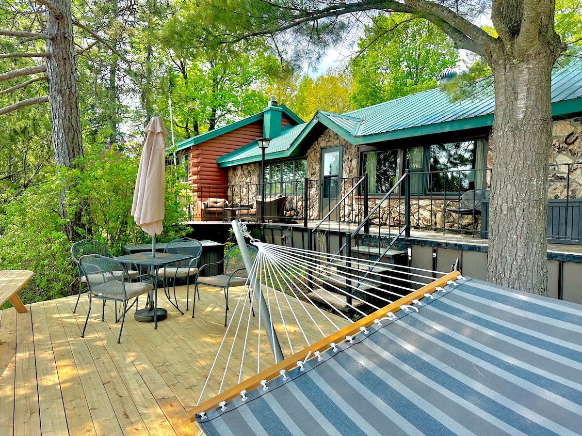 Bienvenido a Sunfish Bay - Hideaway, ubicado en el precioso lago Harriet. Si buscas una experiencia de cabaña tranquila y pacífica, con las comodidades de tu propio hogar, ¡esta es! Excelente ubicación y acceso privado a nuestro lago. El Hideaway tiene una pared de ventanas que dan al lago. A los huéspedes les encantará la gran habitación de concepto abierto que conduce a una terraza envolvente de gran tamaño junto al lago. Los colimbos, patos, cisnes y otros animales salvajes serán increíbles.