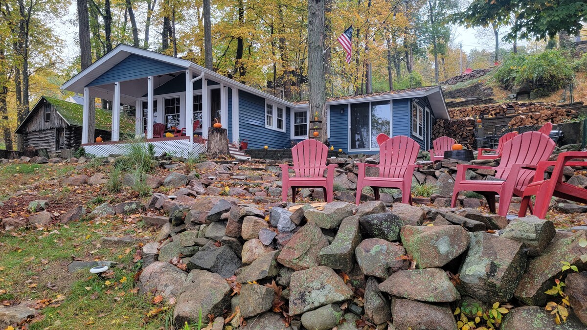 Crea recuerdos maravillosos en el prístino lago Walton. A 1 hora de Nueva York. ¡Esta cabaña frente al agua TODO INCLUIDO es como un mini resort! Rústico, resistente, sensación de estar fuera de la red pero a 2 millas de la ciudad. Tiene 2 muelles, hamaca sobre el agua y fogata🔥. Disfruta de las puestas de sol en el porche cubierto y la terraza. ¿Pescar y buscar águilas calvas🦅 hambrientas? Rema🛶 por el lago para tacos🌮 y bebidas🍸. En el interior tiene decoración retro y antigua, electrodomésticos modernos, chimenea♨️ y WIFI fuerte. Incluye leña DE CORTESÍA, SIN TARIFAS DE LIMPIEZA/MASCOTAS🐕