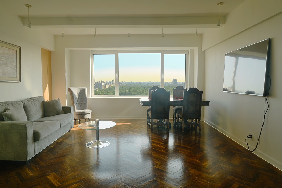 Disfruta de las impresionantes vistas de Central Park junto con los lugares más emblemáticos de la ciudad, como el edificio Time Warner, Central Park Tower y Columbus Circle desde esta suite King de planta alta. Este espacio limpio y elegante, completo con comodidades convenientes que incluyen lavadora, secadora, lavavajillas y una espaciosa cocina y mesa de comedor. Disfruta del acceso al gimnasio, la sauna y la sala de vapor del edificio, ubicados en el tercer piso, para una experiencia rejuvenecedora completa.