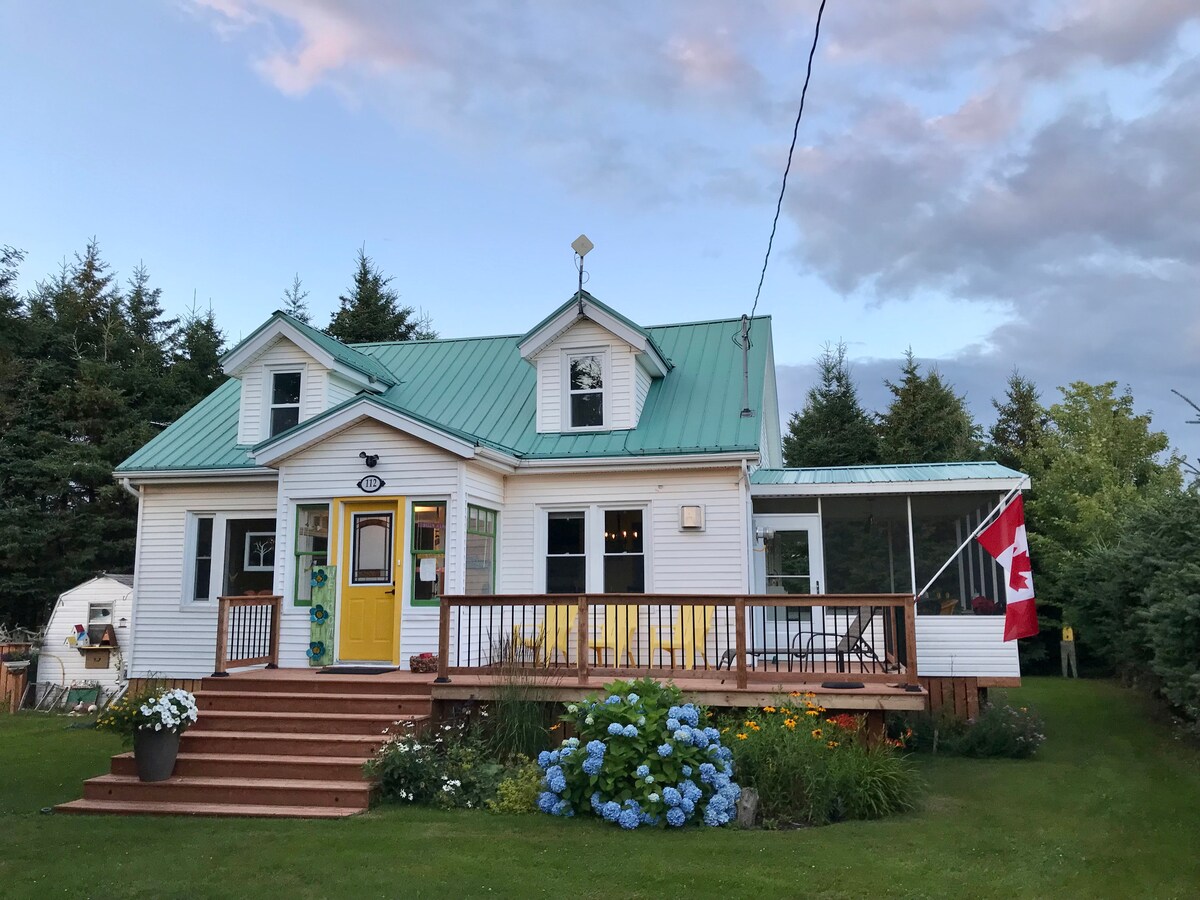 (Licencia n .º2203212) Relájate en esta moderna casa de campo privada de 2 dormitorios y 1 baño frente a la playa al final de la península de Point Prim. Las puertas corredizas de vidrio se abren hacia impresionantes vistas al agua y a la vida silvestre. El acceso directo a la playa privada te permite caminar por la orilla con marea baja, buscar almejas o nadar. A 10 minutos a pie de Point Prim Lighthouse & Chowder House. Disfruta del solárium, la ducha al aire libre, la chimenea, dos bicicletas urbanas y el wifi Starlink rápido. Perfecto para amantes de la naturaleza y escapadas tranquilas.