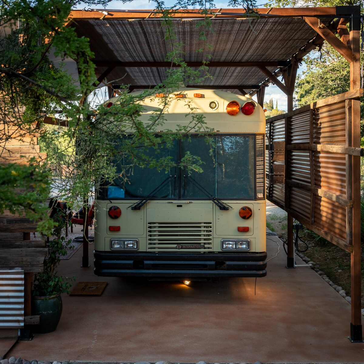 Ven a disfrutar de esta encantadora experiencia en un autobús rústico justo al lado de Life Under The Oaks Lavender Farm. Tiene cocina privada al aire libre y una fantástica ducha al aire libre rodeada de árboles. Disfruta de un porche privado con un hermoso toque rústico. Puedes acurrucarte junto al fuego en la yurta mágica a pocos pasos del autobús. También ofrecemos dos esterillas de yoga en la yurta para que las uses. Tenemos una clase de yoga todos los martes y jueves de 8:30 a 10:00 h. ¡Te invitamos a unirte a la clase de forma gratuita!