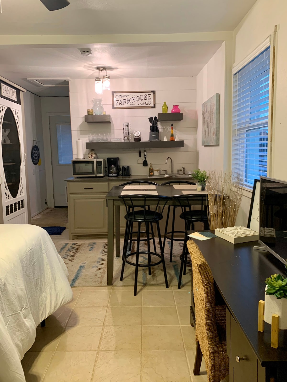 🏡 Amplio estudio en el corazón de la ciudad | Cocina + Lavandería + Ambiente ¡Bienvenido a tu acogedor hogar lejos de casa en el corazón de la ciudad! Este espacioso estudio ofrece más espacio que la mayoría, con una hermosa cocina equipada con elementos básicos, una enorme ducha a ras de suelo y tu propia lavadora y secadora. Disfruta de estacionamiento en la entrada justo afuera de tu puerta y acceso rápido a HEB, el centro comercial, restaurantes y lugares locales. Ya sea que estés aquí por trabajo o por diversión, este espacio es perfecto para relajarte y recargar energías.