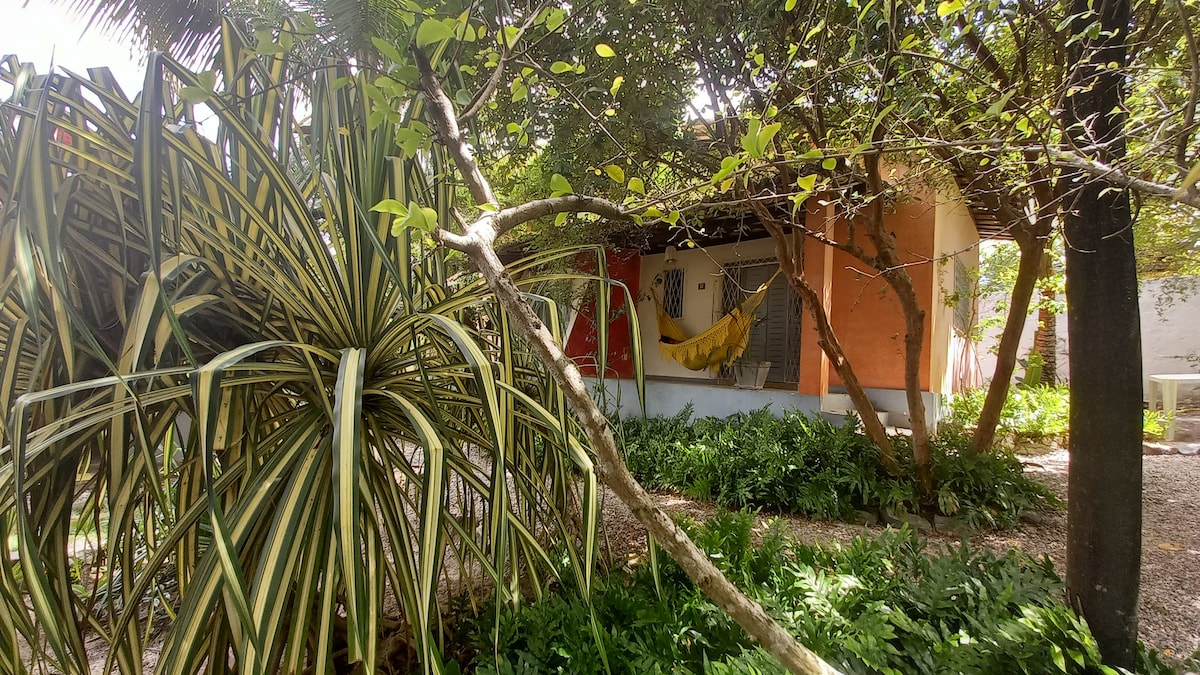 Estamos en la Travessa dos Hibiscus a 650 m del centro. Amplias cabañas tipo estudio, dormitorio y cocina en un solo espacio (utensilios básicos, tenemos más si es necesario), baño privado. Colchón de muelles ensacados de matrimonio. Patio con mesa, sillas y hamaca. Jardín arbolado y estacionamiento interno. Proporcionamos ropa de cama y toallas que cambiamos semanalmente. ¡Aire acondicionado! Tenemos wifi 5G y 2G. No tenemos televisión. Hay gatos en el jardín.