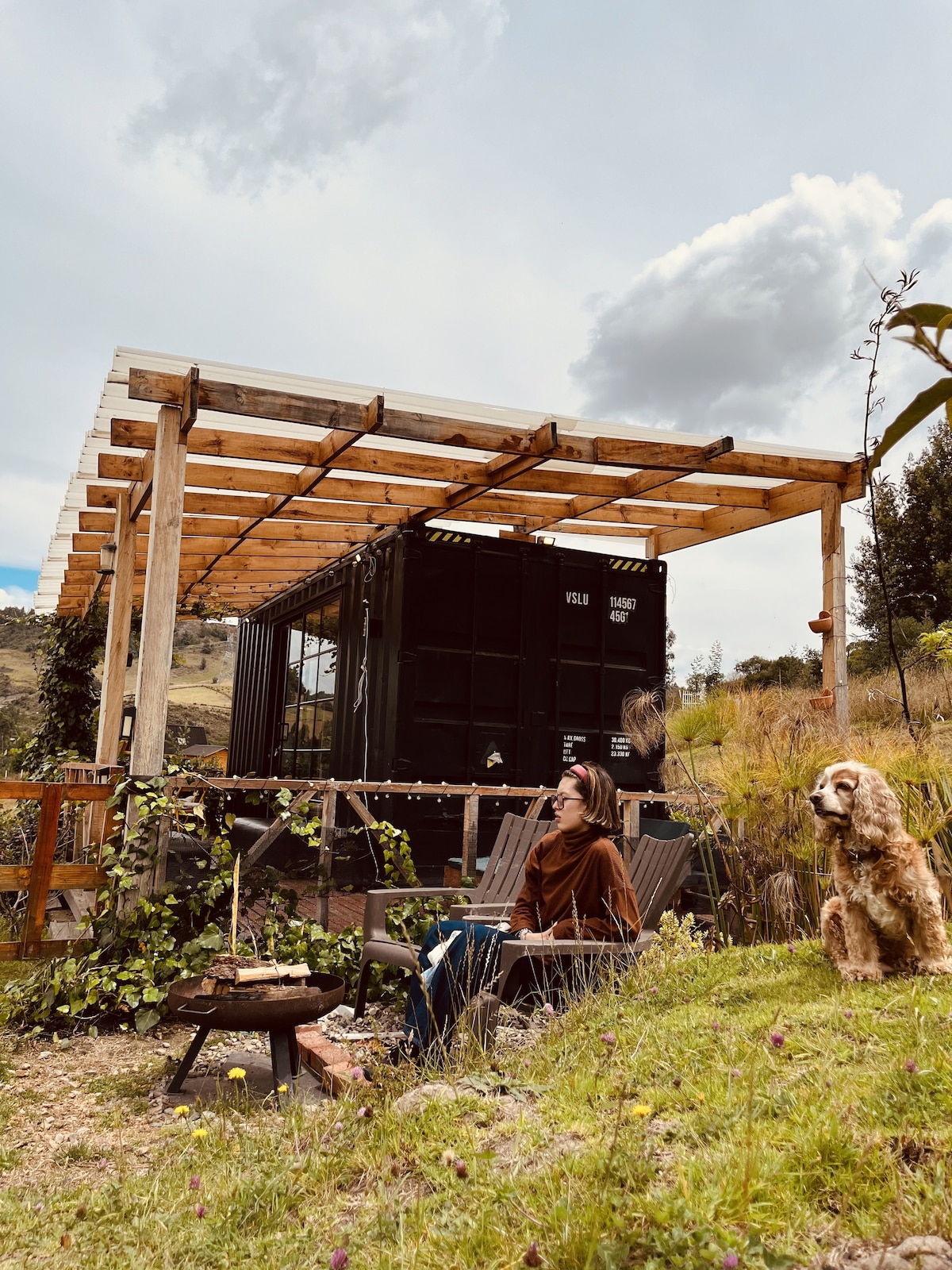 Contenedor cabaña+Jacuzzy+BBQ+hamacas+Fogata Vista