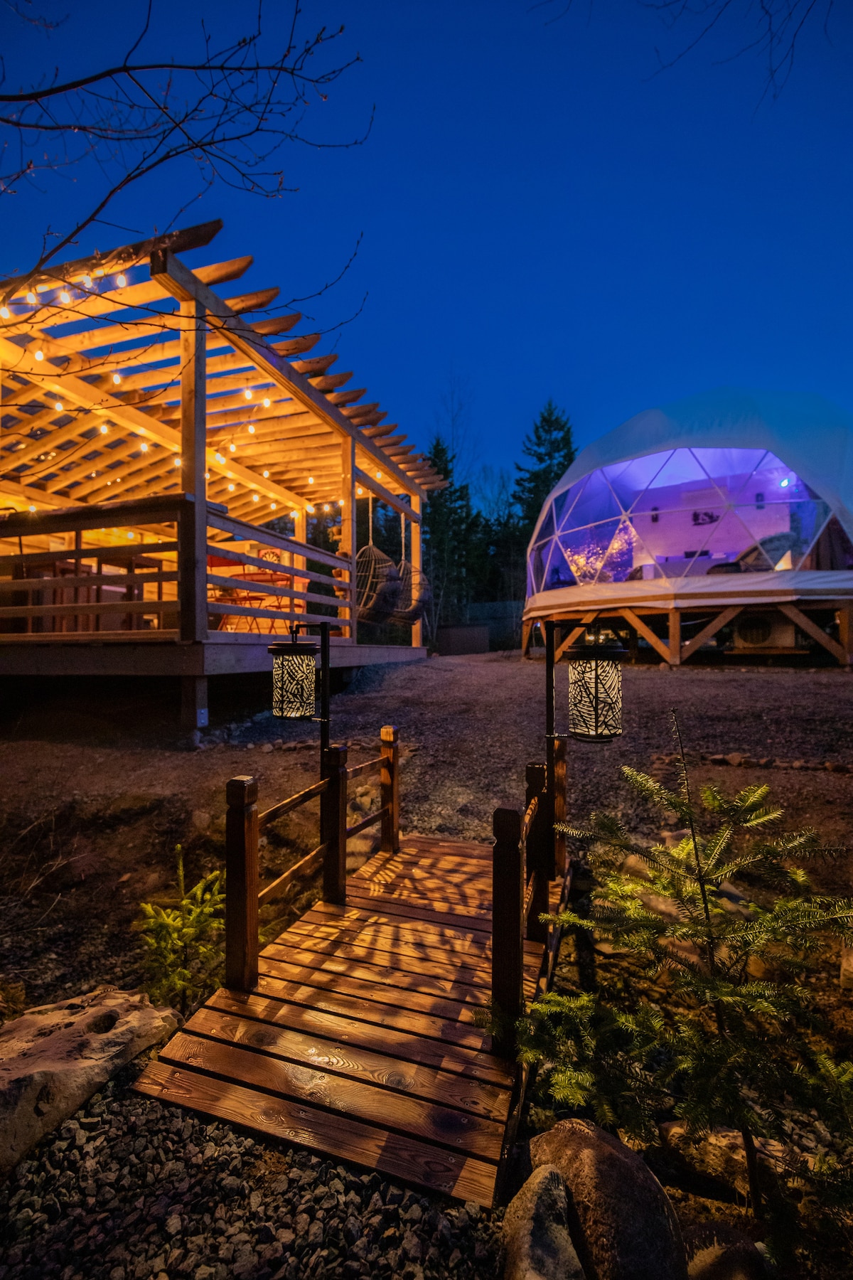 En East Coast Hideaway, queremos que disfrutes de la naturaleza y del aire libre. El escape perfecto de la ciudad, pero no muy lejos de restaurantes y atracciones. Ven a disfrutar de nuestra cúpula privada de observación de estrellas rodeada de hermosos árboles de arce, ubicada en nuestra propiedad de 30 acres. Estamos abiertos todo el año. La escapada está hecha para 2 adultos. ¡Tendrás tu propia cocina americana totalmente equipada, baño de 3 piezas, jacuzzi de leña, cenador privado, sauna, fogata y más! ¡Apto para vehículos todo terreno y motos de nieve!