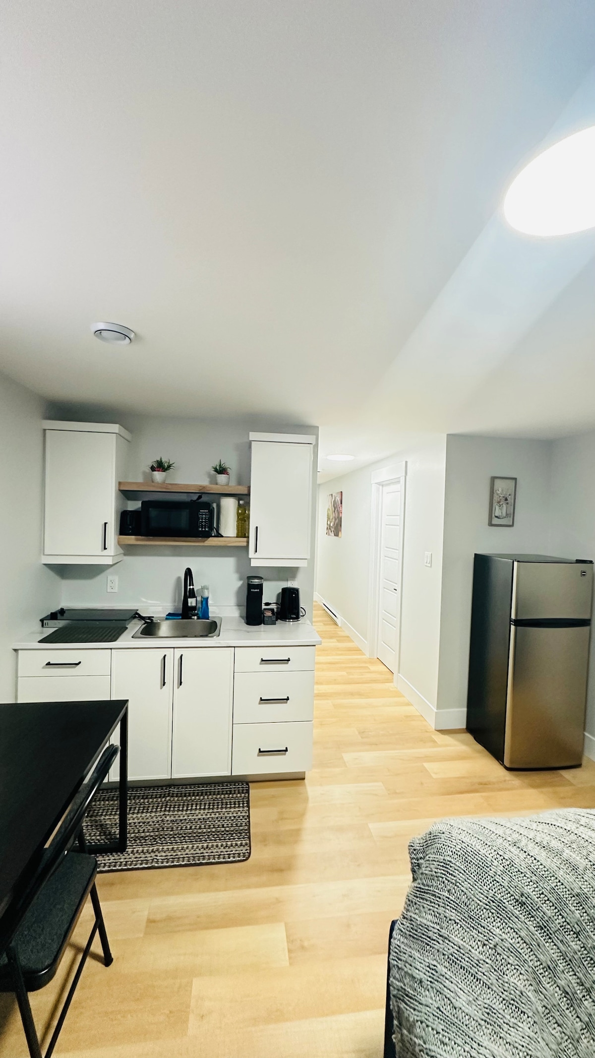Bienvenido a nuestro nuevo hogar ubicado en la codiciada zona de Moncton. Un exclusivo apartamento privado de un dormitorio que cuenta con su propia entrada, una impresionante cocina contemporánea, una acogedora sala de estar completa con un sofá cama, un dormitorio lujosamente cómodo, baño privado y la comodidad de una lavandería en la unidad con lavadora y secadora. Convenientemente céntrico: a minutos del casino, el coliseo, el parque Magnetic Hill, el centro de la ciudad, restaurantes, centros comerciales, el aeropuerto y la salida de la autopista.