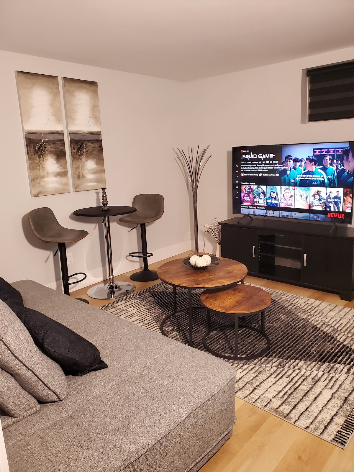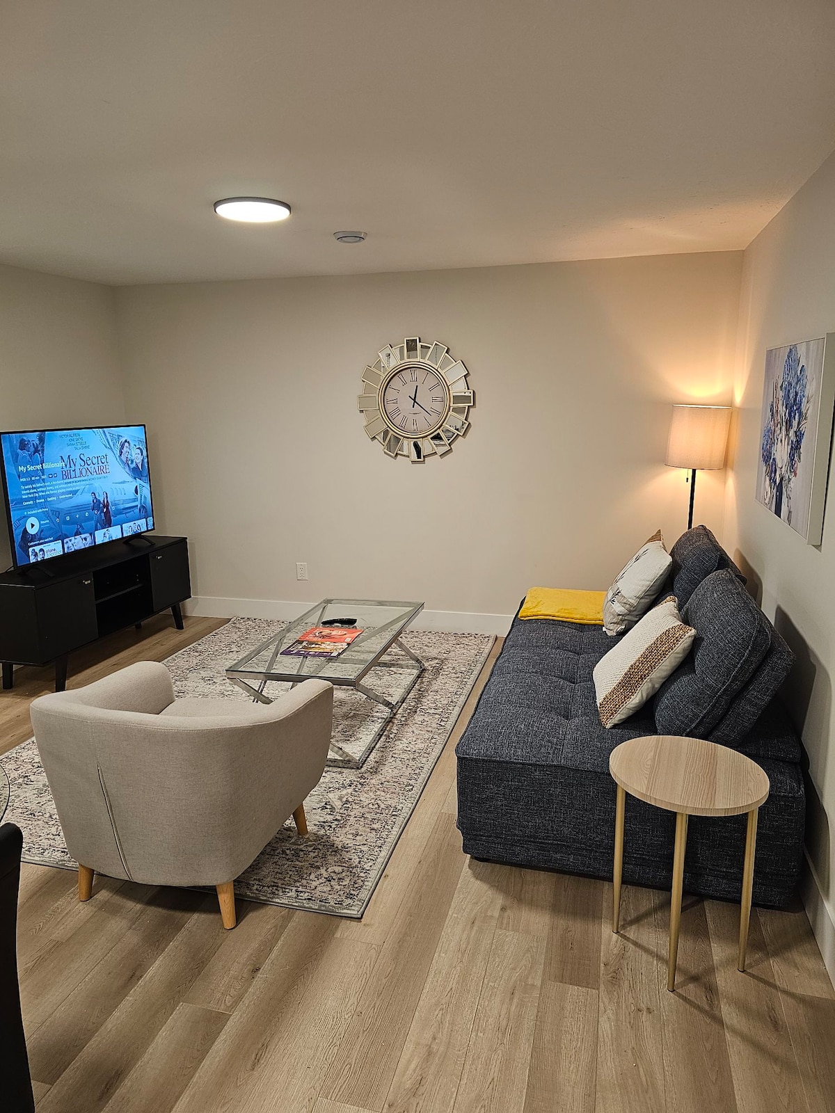 Bienvenido a nuestro acogedor y elegante apartamento de un dormitorio en el sótano con entrada independiente, ubicado en el tranquilo extremo norte de Moncton. En el interior encontrarás un amplio dormitorio con una cama tamaño queen, una sala de estar con TV e internet y una cocina totalmente equipada con comedor. También hay un espacio de oficina para trabajar a distancia, un baño y una lavadora y secadora privadas. El sofá de la sala de estar se extrae para acomodar a un adulto o dos niños, por lo que es ideal para familias pequeñas o invitados adicionales.