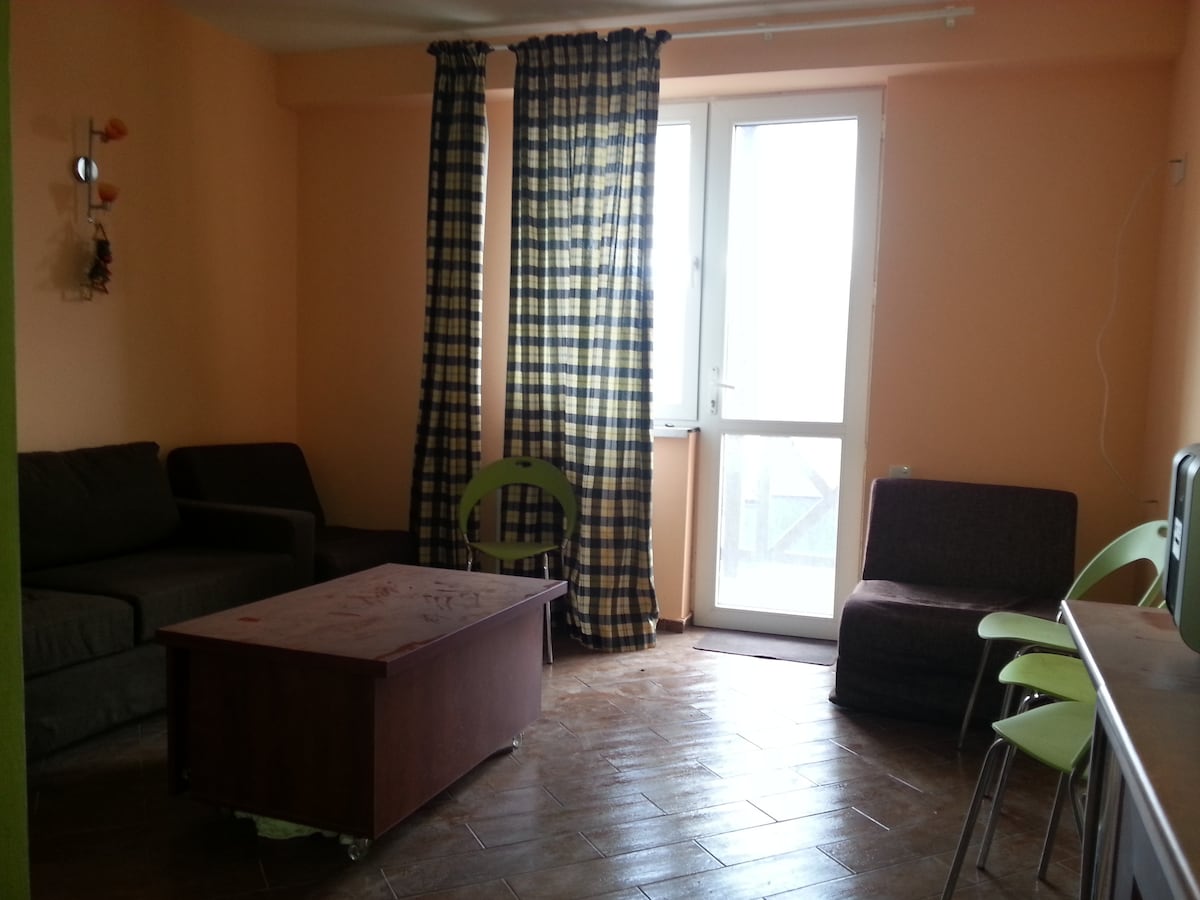 Nuestro apartamento está en Gudauri, Penta Invest (o apartamentos Burjanadze). Puedes esquiar directamente a la casa desde la pista de esquí (pista de esquí 1). El apartamento es perfecto para grupos de amigos, familias (con hijos) y parejas. Se encuentra en un barrio tranquilo. Nuestro apartamento tiene su propio comedor, la cocina está equipada con todos los utensilios y electrodomésticos necesarios. El apartamento tiene su propio baño, un televisor Android y conexión wifi gratuita (30 MB/SC). Un balcón con una hermosa vista a las montañas y a los remontes 1 y 2.