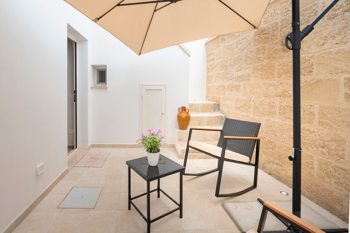 He restaurado recientemente esta antigua casa, que consta de un dormitorio, una sala de estar con sofá cama doble, cocina y un baño con ducha y un lavadero con lavadora. Las bóvedas son de estrella y el dormitorio conserva el suelo original de baldosas. El jardín tiene un pequeño huerto de cítricos y una barbacoa de ladrillo. La casa está en el centro histórico de Galugnano, un pequeño pueblo a 10 km de Lecce, a 20 del Adriático y a unos 30 del Jónico, cerca de la carretera que conecta Lecce con Leuca.