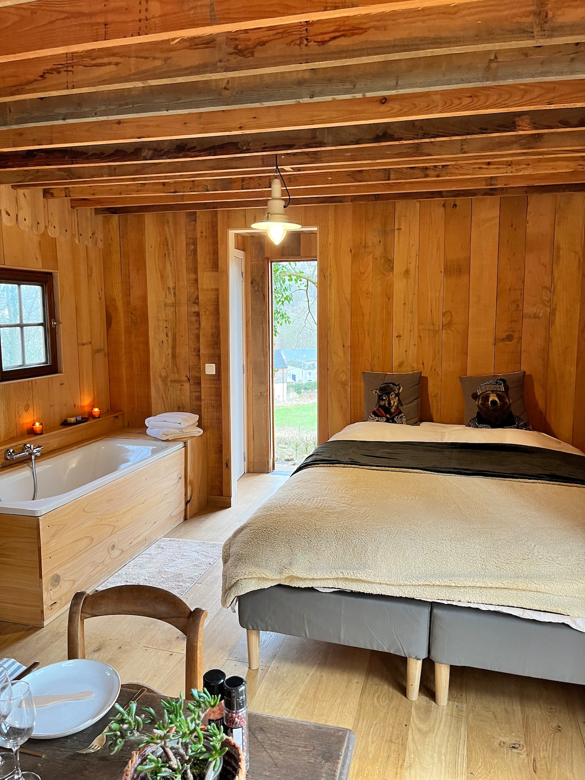 En un lugar tranquilo en el corazón de las Ardenas, puedes alojarte con nosotros en silencio y lujo. Nuestras casas rurales están construidas de forma sostenible con un acabado de alta calidad de materiales naturales. Nos complace darle la bienvenida a nuestros alojamientos, que cuentan con una cama tamaño king, ducha a ras de suelo, cocina equipada (lavavajillas, máquina Nespresso), aire acondicionado y estufa de leña. Disfruta de tu propio bienestar con nuestra sauna y jacuzzi al aire libre, totalmente privados con hermosas vistas de las colinas de las Ardenas.