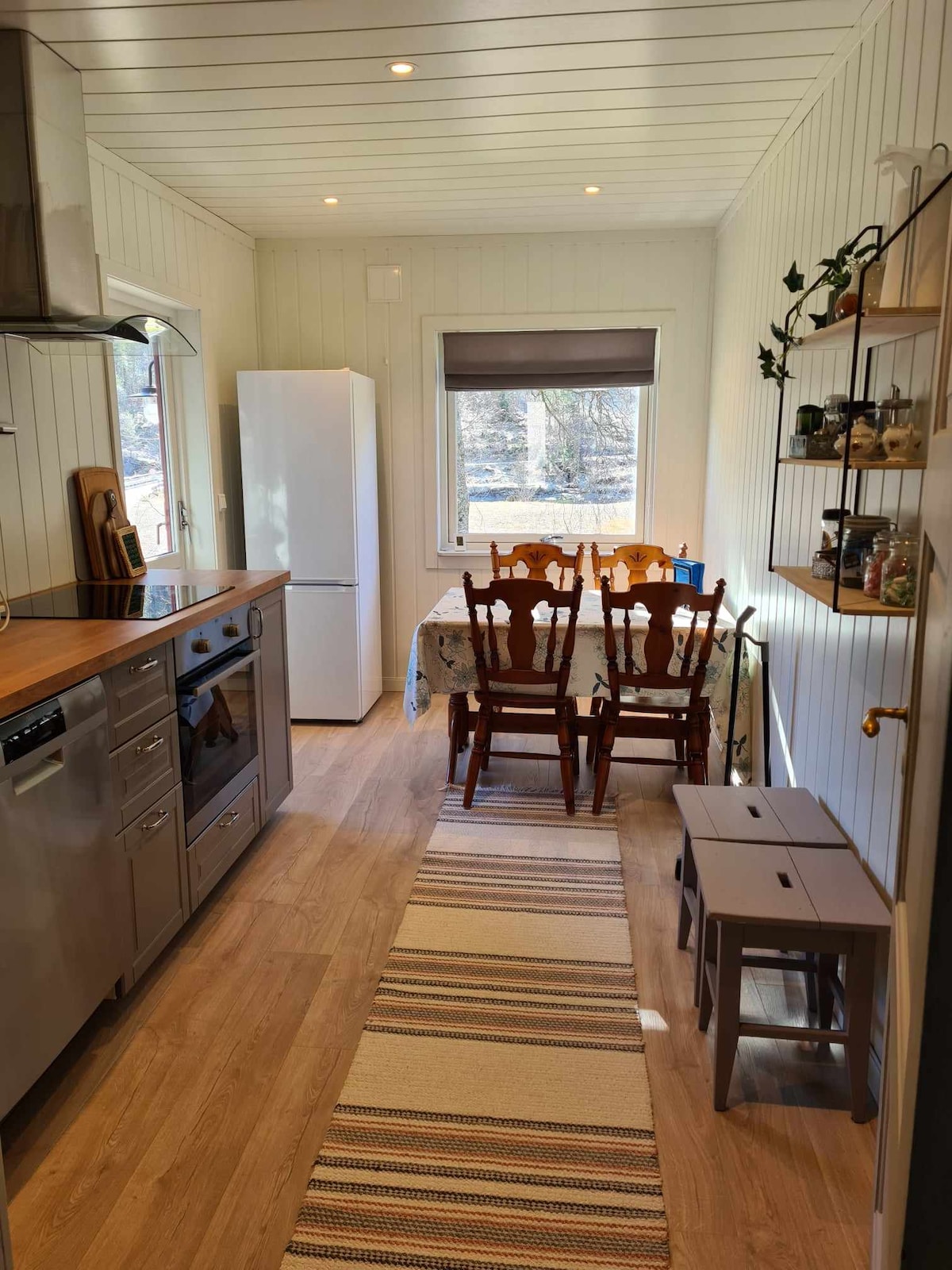 Casa rural de unos 60 metros cuadrados con 2 dormitorios. Cocina propia con vajilla. La cabaña se encuentra en una zona tranquila con otras 3 cabañas. El chalet está en una carretera privada y la zona es tranquila y silenciosa. Hay barbacoa en la cabaña para disfrutar de buenas noches con el atardecer en el fiordo. Hay una chimenea en la sala de estar y viene con leña que se puede utilizar si hace frío. También hay calefacción eléctrica en todas las habitaciones. La ropa de cama y la limpieza están incluidas en el precio.